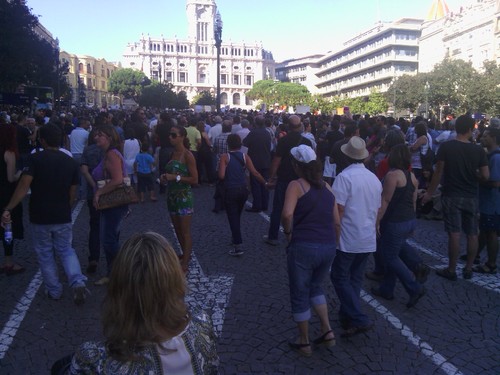 Hoje como passei a tarde na baixa, pude passar pelos Aliados e dar uma vista de olhos na manifestação. Não que fosse pela minha vontade - não queria estar lá no meio, não queria ser um mais um número a contar para as 100 mil pessoas que lá estiveram.